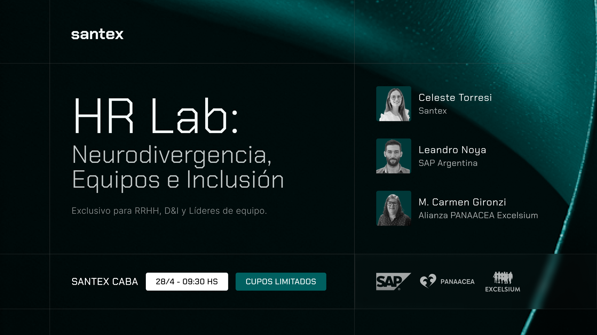 El evento contará con la participación de expertos en la temática, entre ellos Celeste Torresi (Chief Culture Officer de Santex), María del Carmen Gironzi (Alianza PANAACEA – Excelsium) y Leandro Noya (SAP), quienes aportarán su mirada y experiencia en la construcción de entornos laborales más inclusivos.