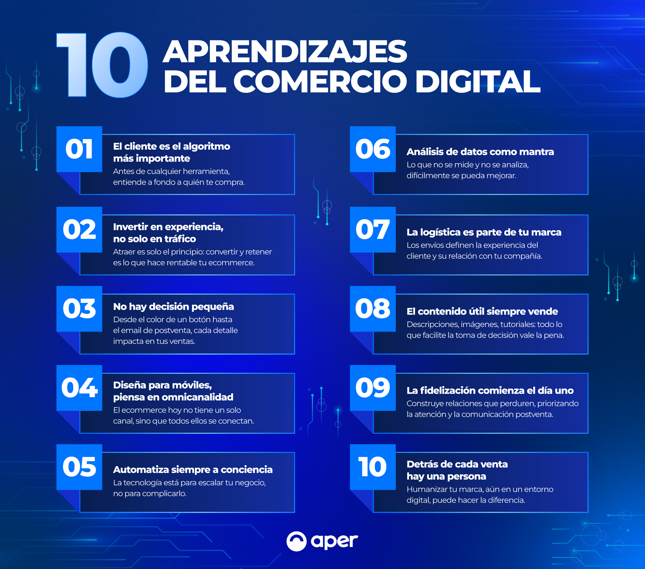 Porque el futuro del ecommerce no se trata solo de vender más, sino de construir plataformas robustas, automatizadas y preparadas para responder en tiempo real a los desafíos del mercado. En Aper trabajan para que cada solución digital sea una ventaja competitiva tangible: diseñada para crecer, adaptarse y evolucionar con un propósito claro y ético.